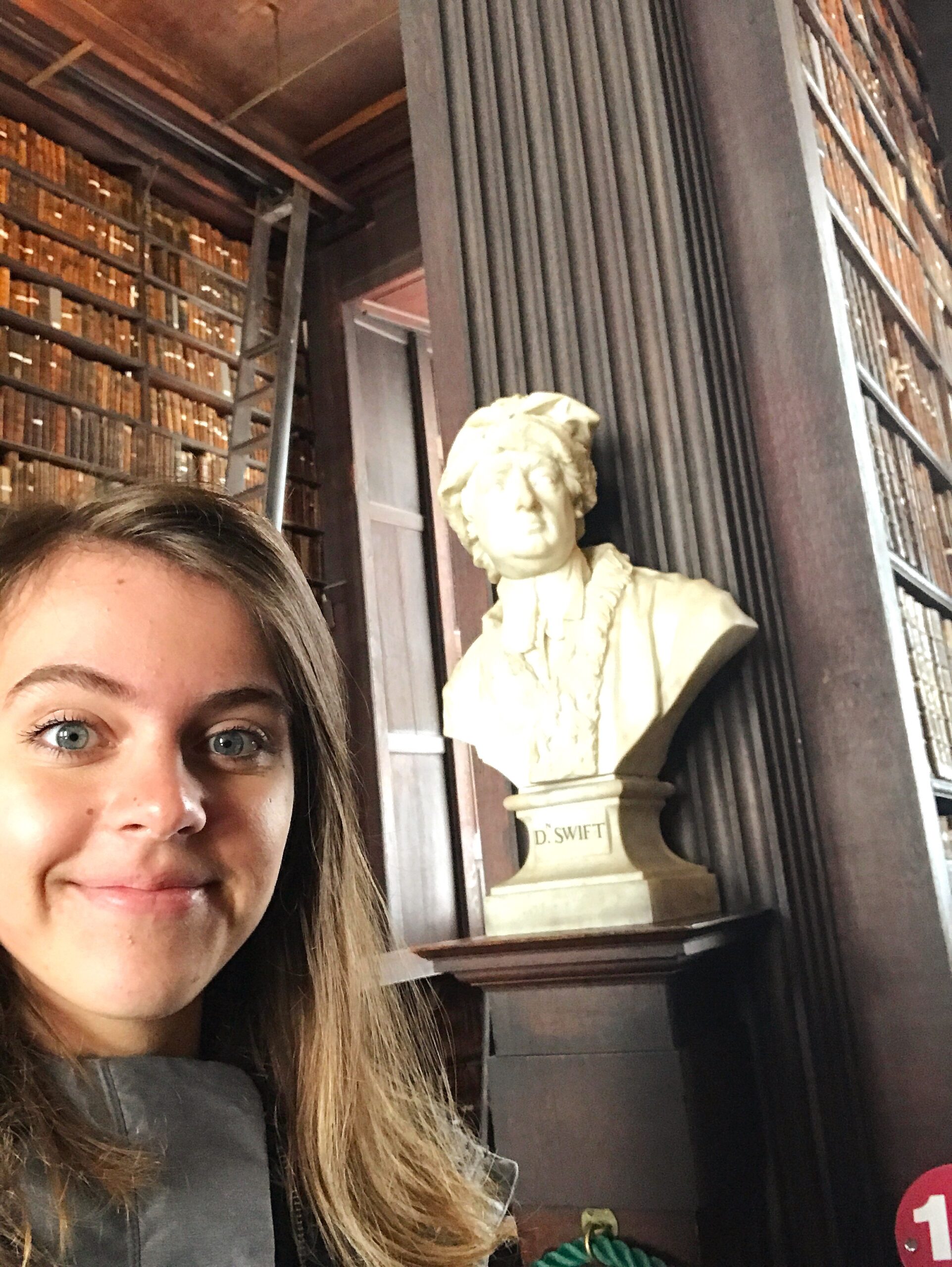 My very favorite thing in Dublin, though, was the Long Room at Trinity College. This is one of the most famous libraries in the world, holding 200,000 rare books stacked bottom shelf to top shelf from largest to smallest. Oddly enough you might recognize it as the Jedi Archives from Star Wars Episode II. The exhibit in the library is for the Book of Kells, a Latin Christian text of the four Gospels, written by monks in Scotland in the 9th century. It’s written on sheets of leather “paper” with inks from all over the world, and saved from Viking raids by being safely kept in Kells, Ireland, before being transferred to the even safer site of Trinity College. The exhibit ends and then you walk up the stairs to the Long Room, where I just about cried. I’ll be melodramatic and say that literature is such an incredible example of human achievement. But it really is.